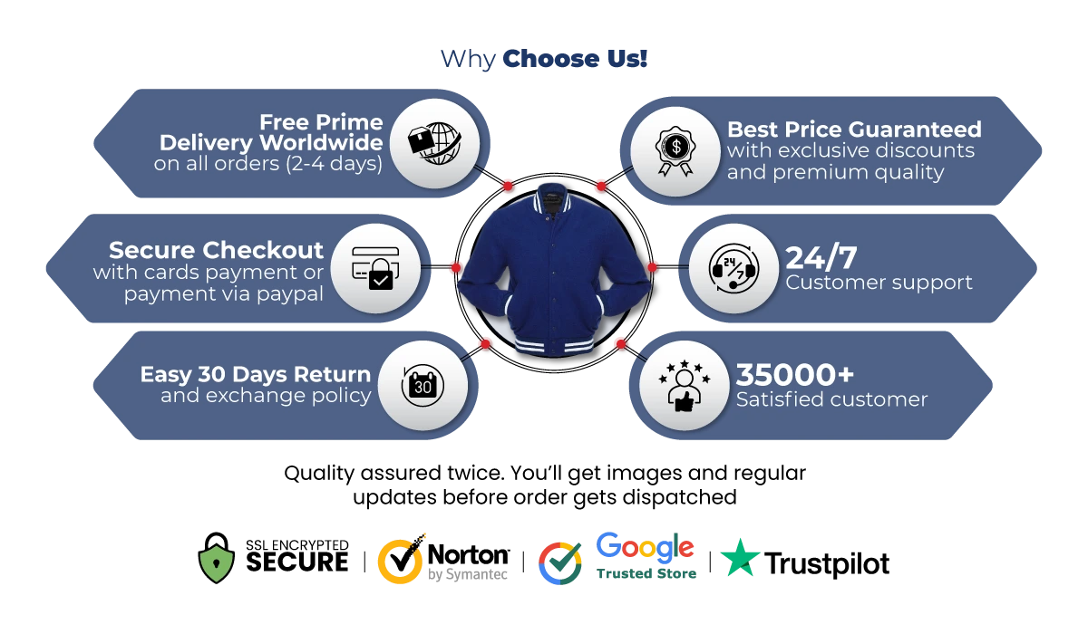 Amazing quality varsity jacket! Perfect fit, premium material, and super fast delivery. Exactly as described.!