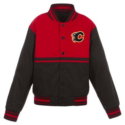 Calgary Flames Varsity Black Wool & Leather Jacket