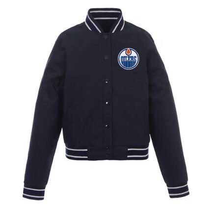 Navy Edmonton Oilers Front-Hit Poly-Twill Jacket
