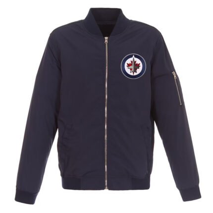 Navy Winnipeg Jets Lightweight Nylon Bomber Jacket