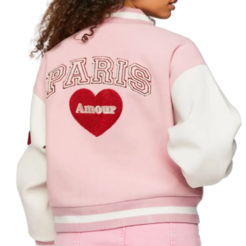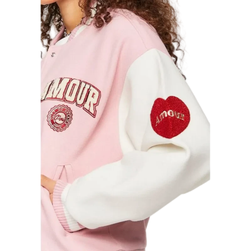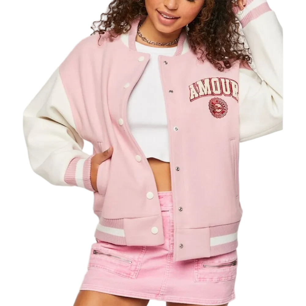 Chic Meets Classic The Amour Pink Varsity Jacket for Women