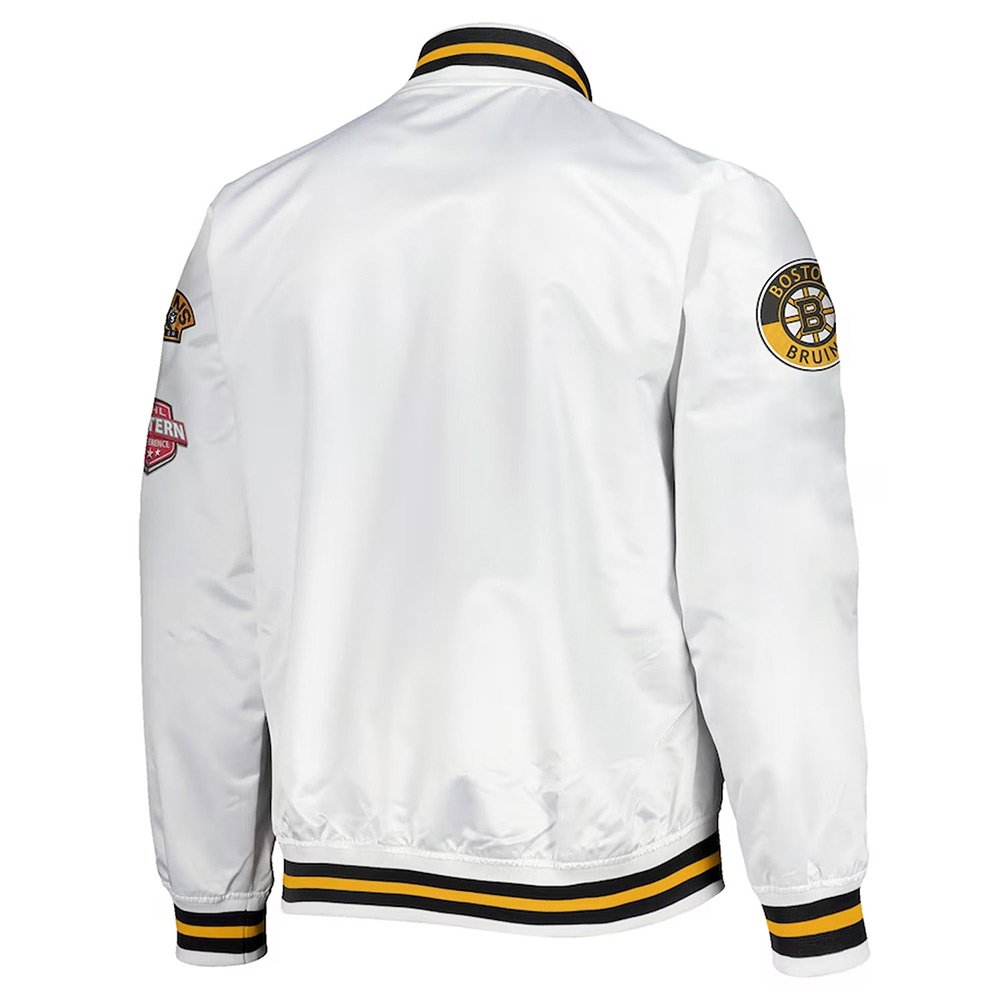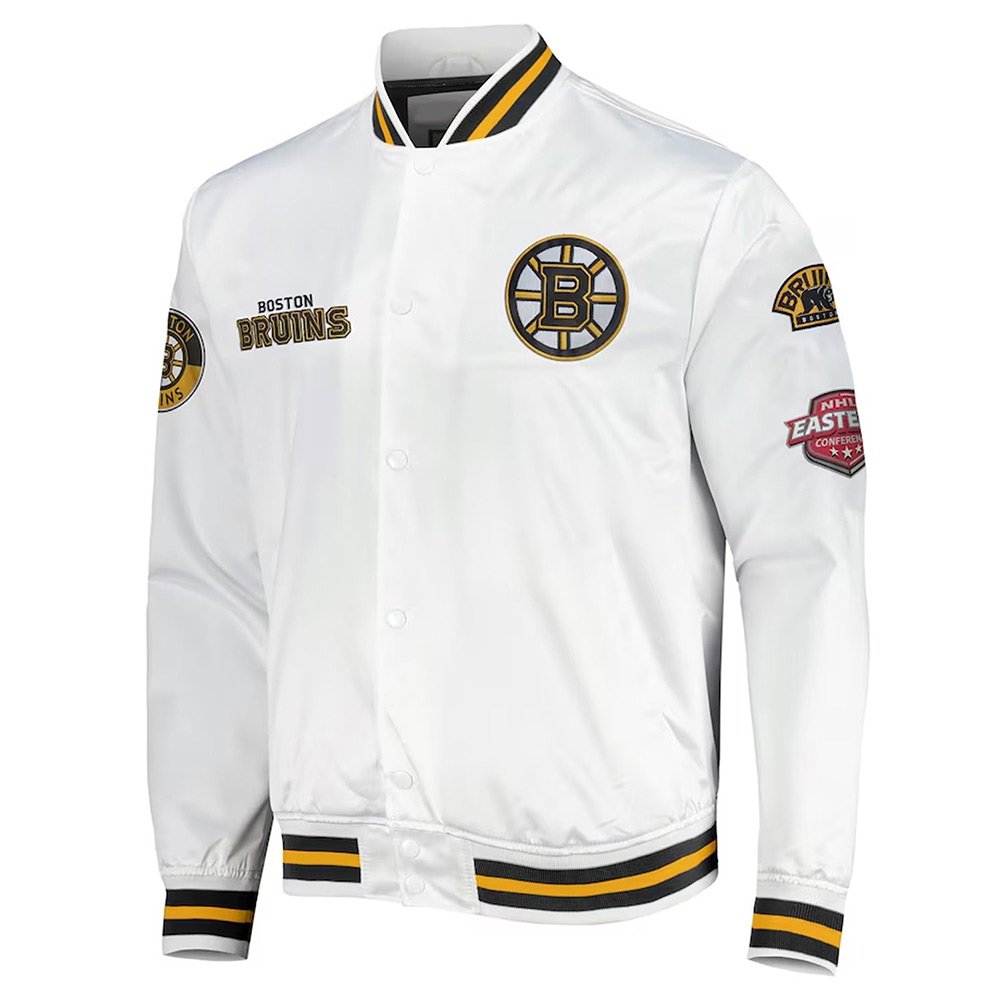 - Logo: Boston Bruins logo on the front, sleeves, and back