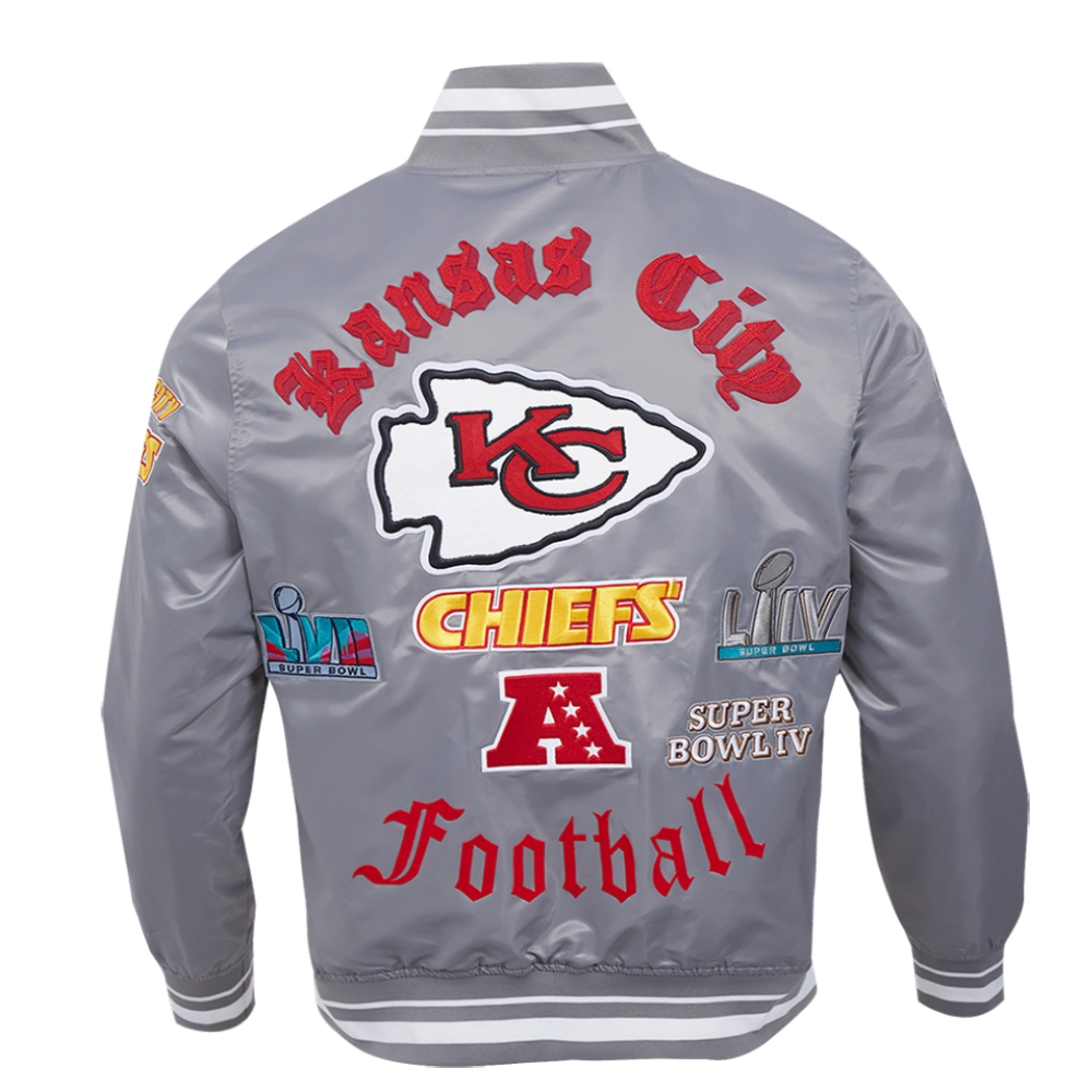 Kansas City Chiefs Jacket – Show Your Pride in Style with the Gray Satin Varsity Look