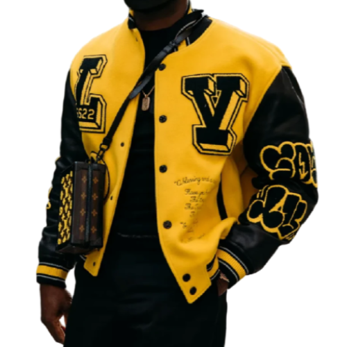 Step into the spotlight with the Louis Vuitton Jacket, where luxury fashion meets classic athletic style. This black and yellow varsity jacket is not just outerwear—it’s a fashion statement crafted for trendsetters. With its sharp contrast colors, high-quality materials, and tailored silhouette, this piece redefines what it means to wear a men varsity jacket in 2025. Whether you’re a collector, streetwear lover, or simply someone with bold taste, this is a jacket that speaks volumes.