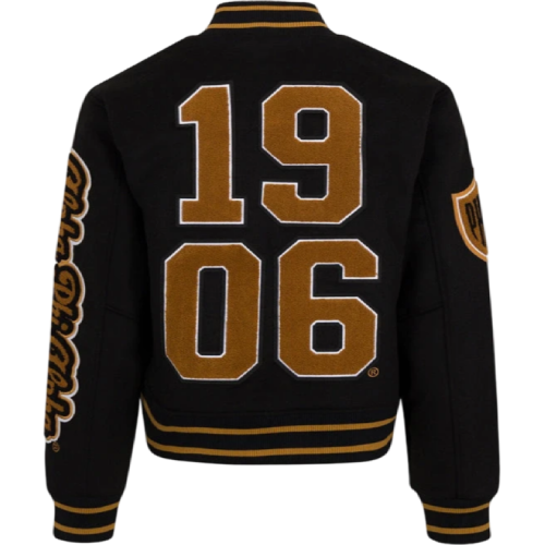 This black gold letterman jacket is made for those who dress with intention. The colors symbolize prestige and bold confidence, making it a versatile piece that transitions from day to night, campus to city, and casual events to game nights. It’s bold without being loud, classic without being dated.