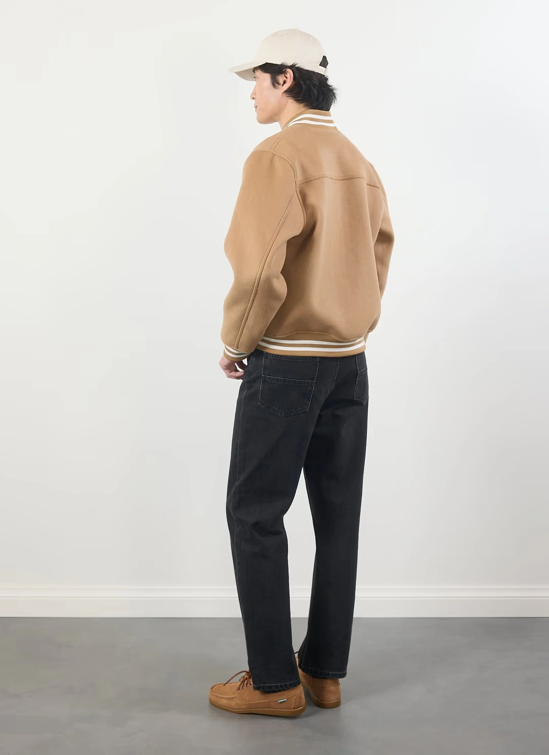 Neutral tan varsity jacket color for easy styling