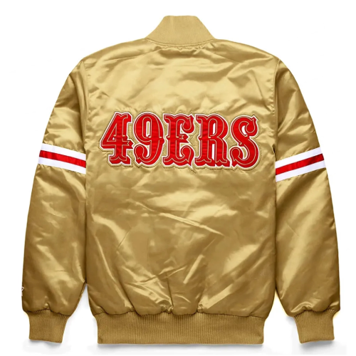 If you’re a die-hard 49ers fan who loves to stand out, this San Francisco 49ers Satin Jacket is made for you. It’s bold, it’s shiny, and it screams team spirit from every angle. Inspired by the look and energy of the NFL team, this golden satin jacket gives you that pro-player vibe without the jersey price tag.