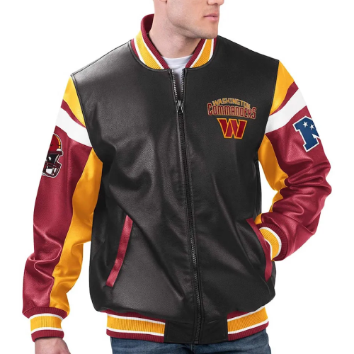 Show Your Spirit in Style: The Washington Commanders Black Varsity Leather Jacket
